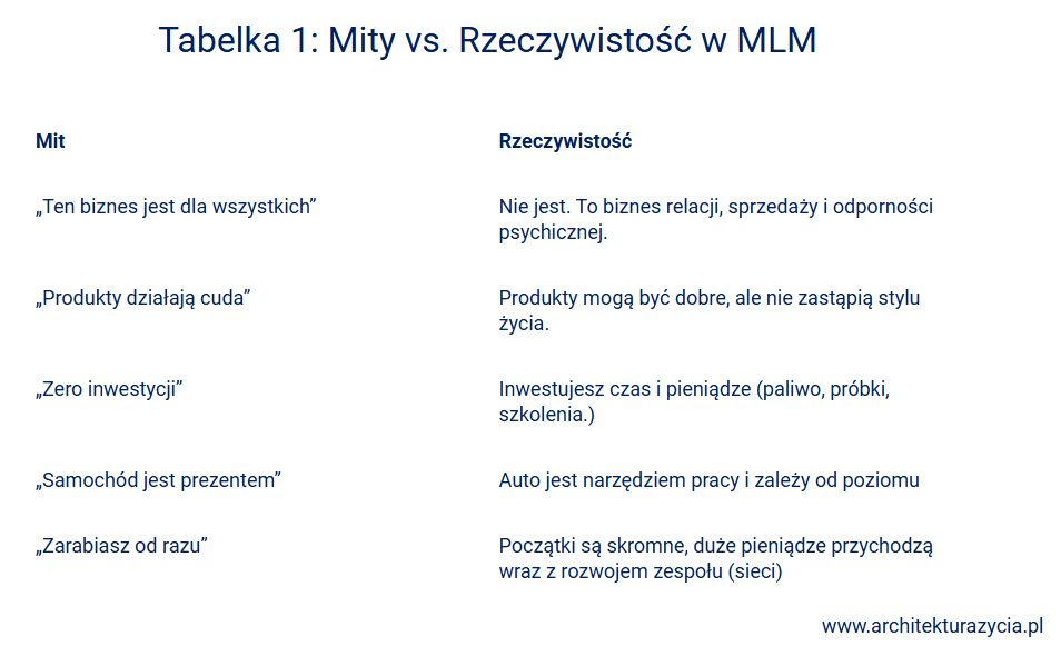 W praktyce każda firma MLM ma swój własny model, własne progi, własne wymagania i własne zasady utrzymania statusu konsultanta. I to właśnie te różnice decydują o tym: